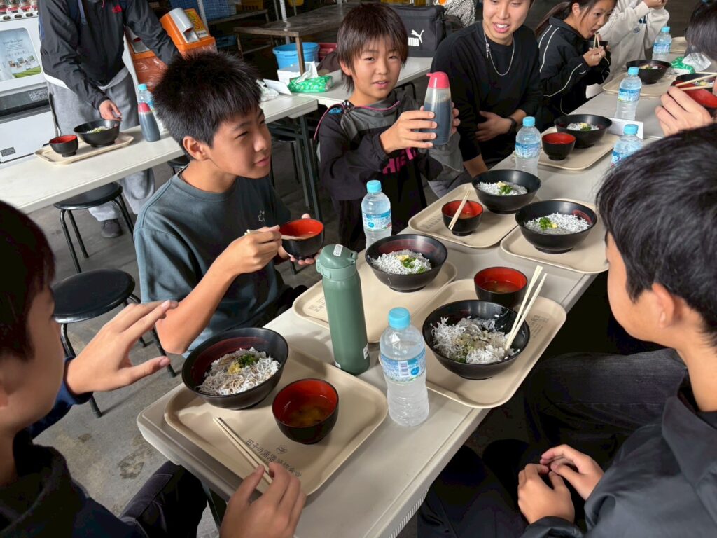 生シラスと釜揚げシラスのハーフ丼を味わいながら、笑顔がこぼれました。