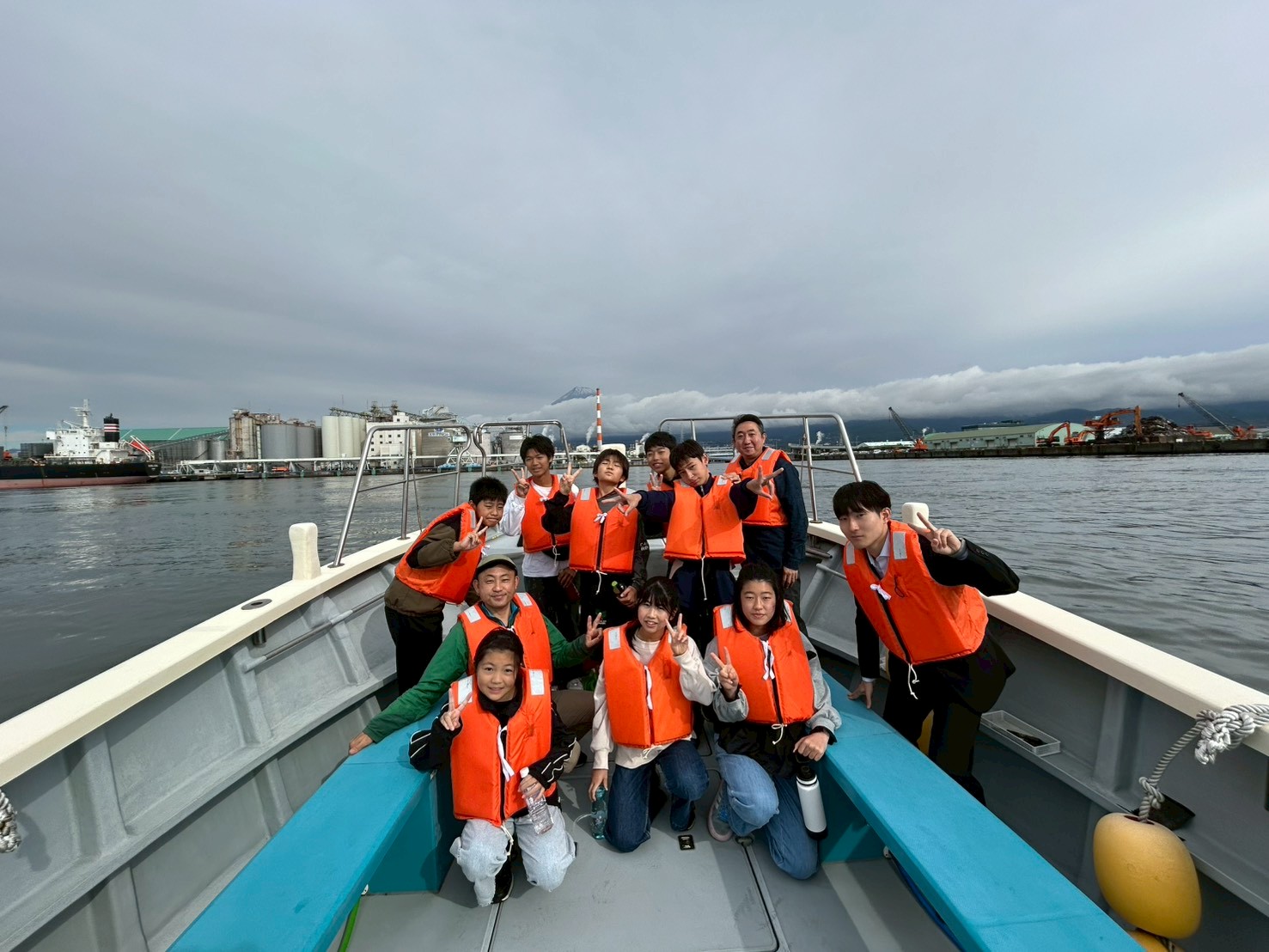 田子の浦港を出発し、minamoクルーズさんの安心・安全な運航管理のもと、田子の浦の海から富士山の雄大な姿を眺めました。
